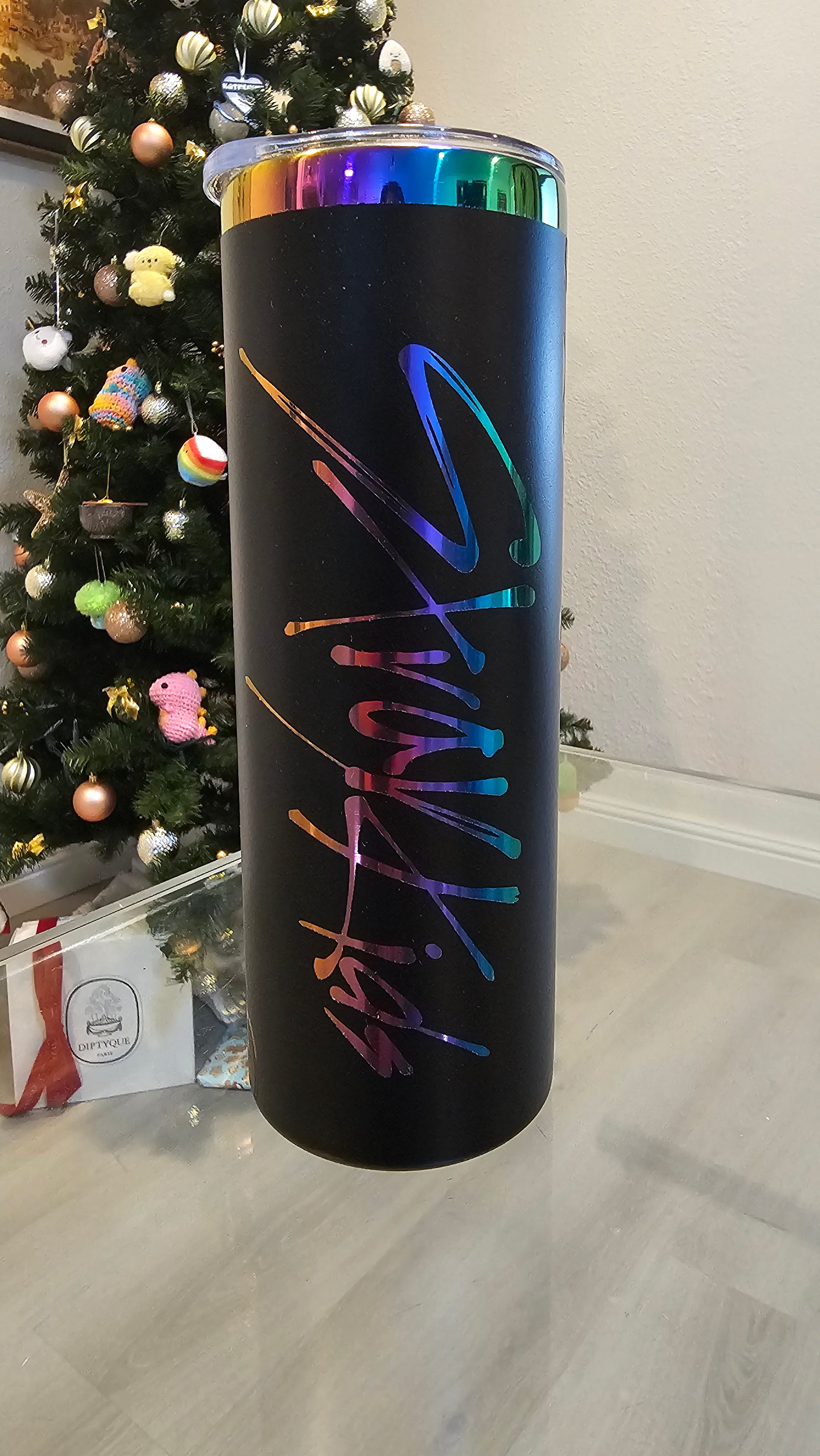 Be the talk of the town with these customized rainbow-plated tumblers!